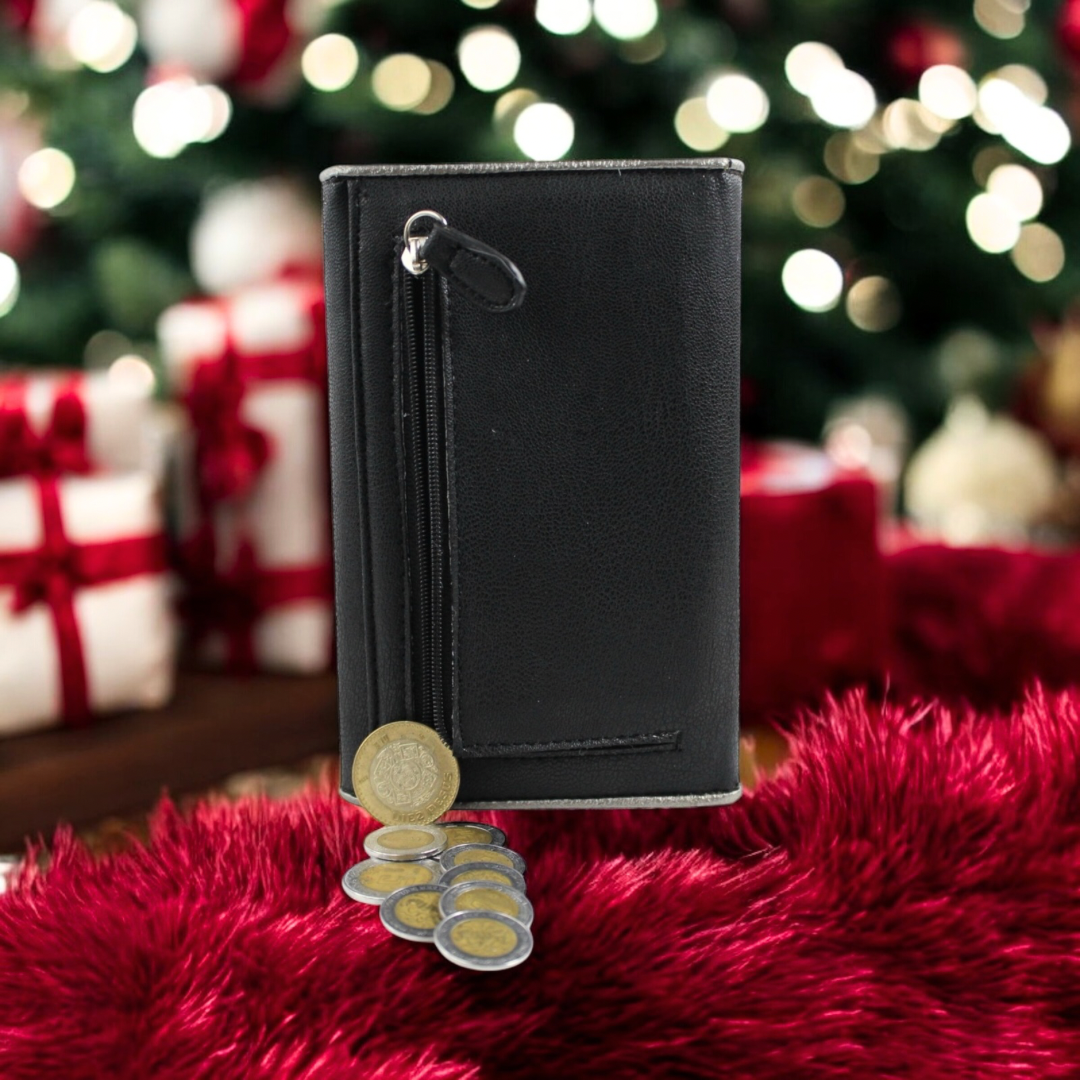 ° Cuenta con monedero, tarjetero y billetera.